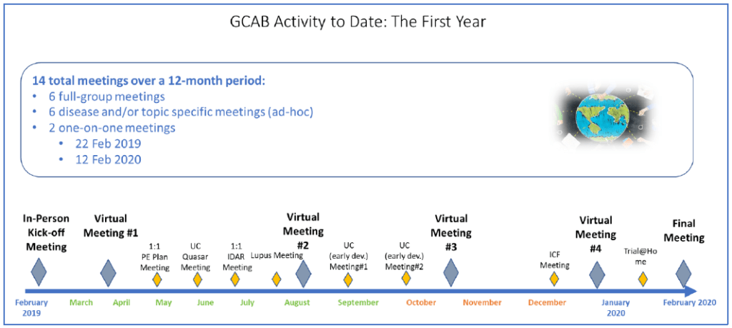 A growing focus on patient-centered outcomes by sponsors and regulatory agencies is an opportunity to establish practices that mutually benefit patients and pharmaceutical companies and other stakeholders. The year-long experience with the GCAB provided rich, actionable insights that could not have been obtained from other stakeholders, and demonstrated that a key component tying the GCAB’s feedback together was the sense of trust built by consistent, two-way dialogue.