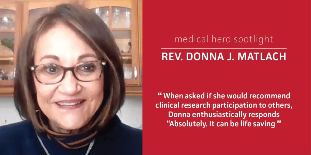 When asked if she would recommend clinical research participation to others, Donna enthusiastically responds “Absolutely. It can be life saving.”