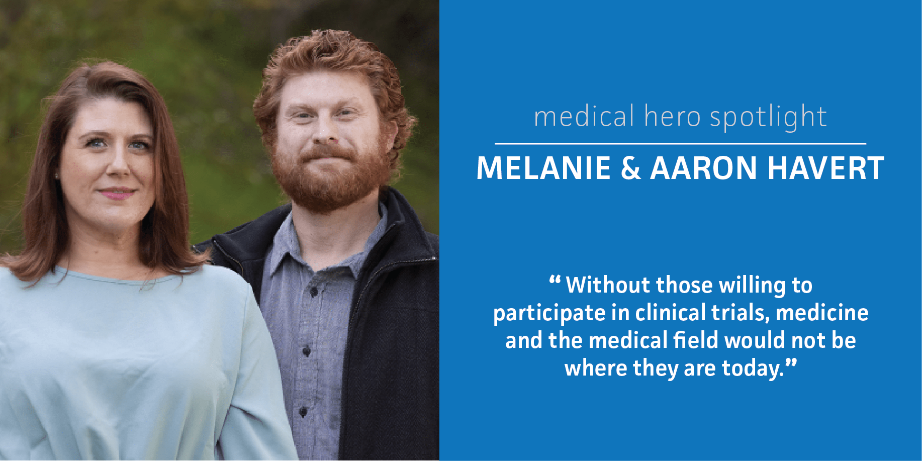 “Participating in a clinical trial is a big deal,” says Aaron. “It is an act of love and hope for a better future. Without those willing to participate in clinical trials, medicine and the medical field would not be where they are today.”